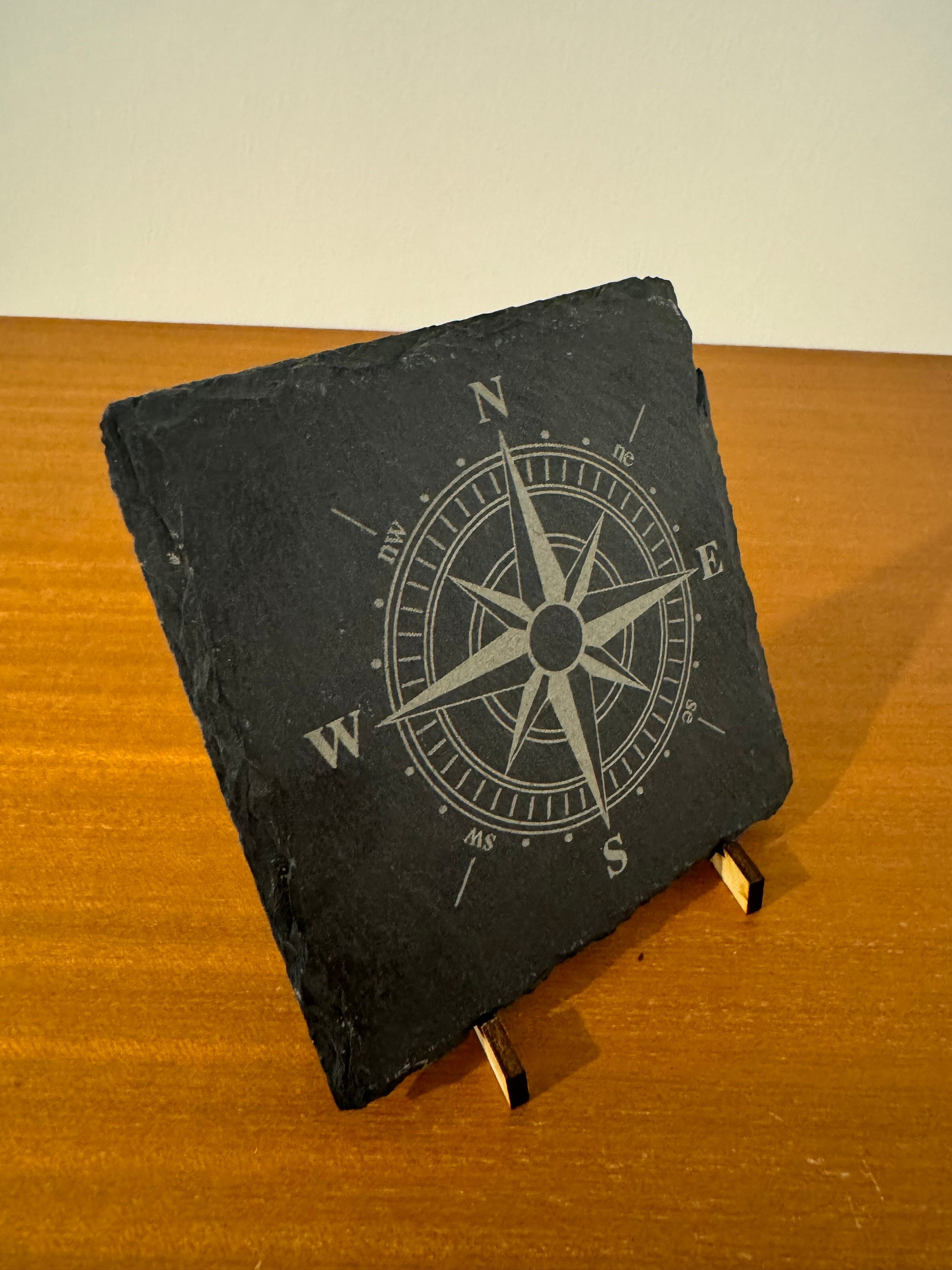 Compass coaster. Laser engraved. Gift, Wedding, Anniversary, Birthday, Christmas