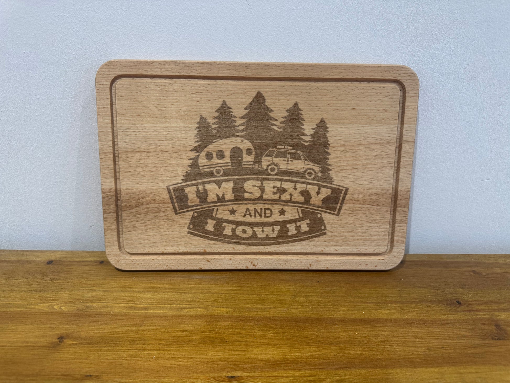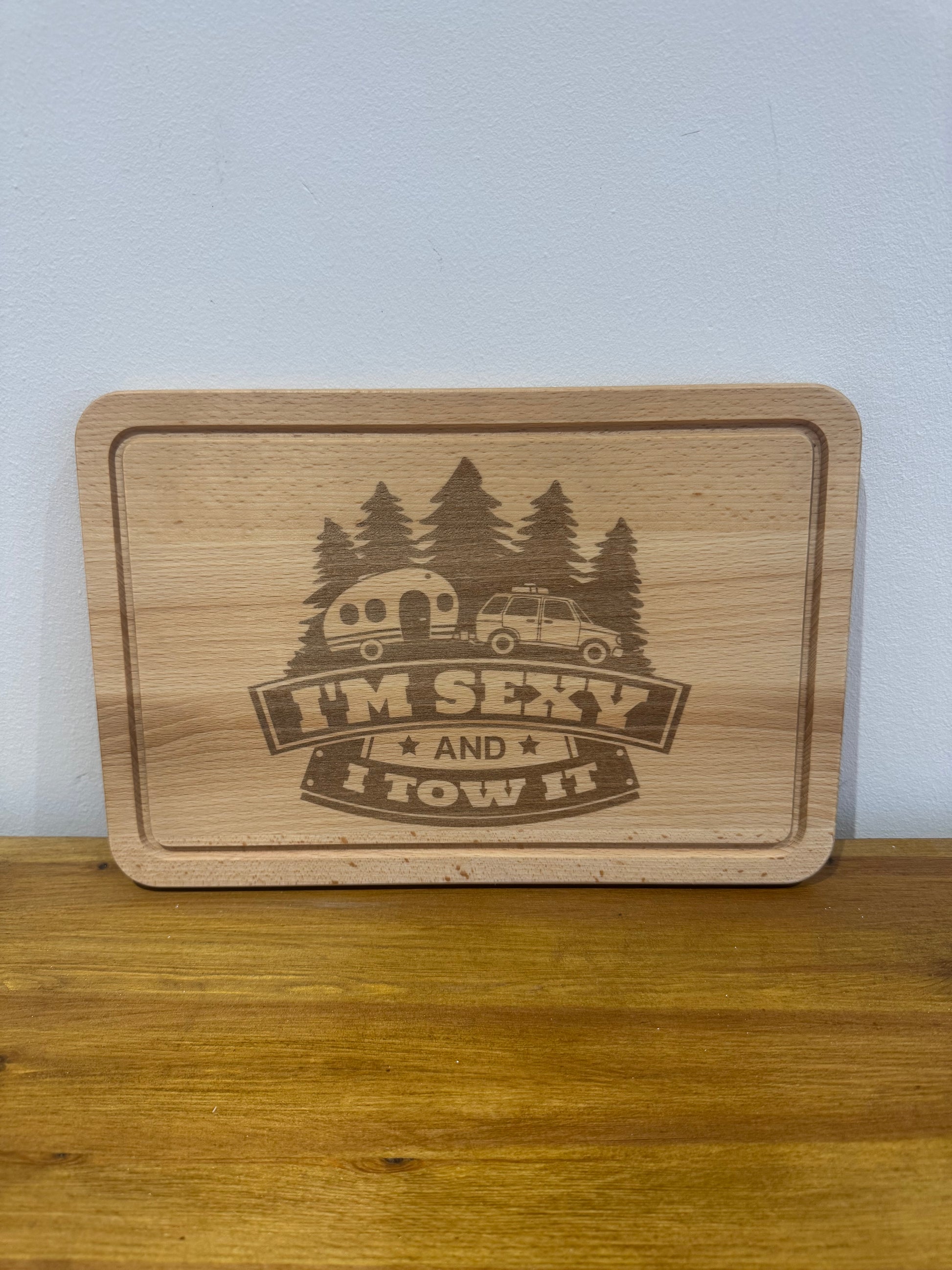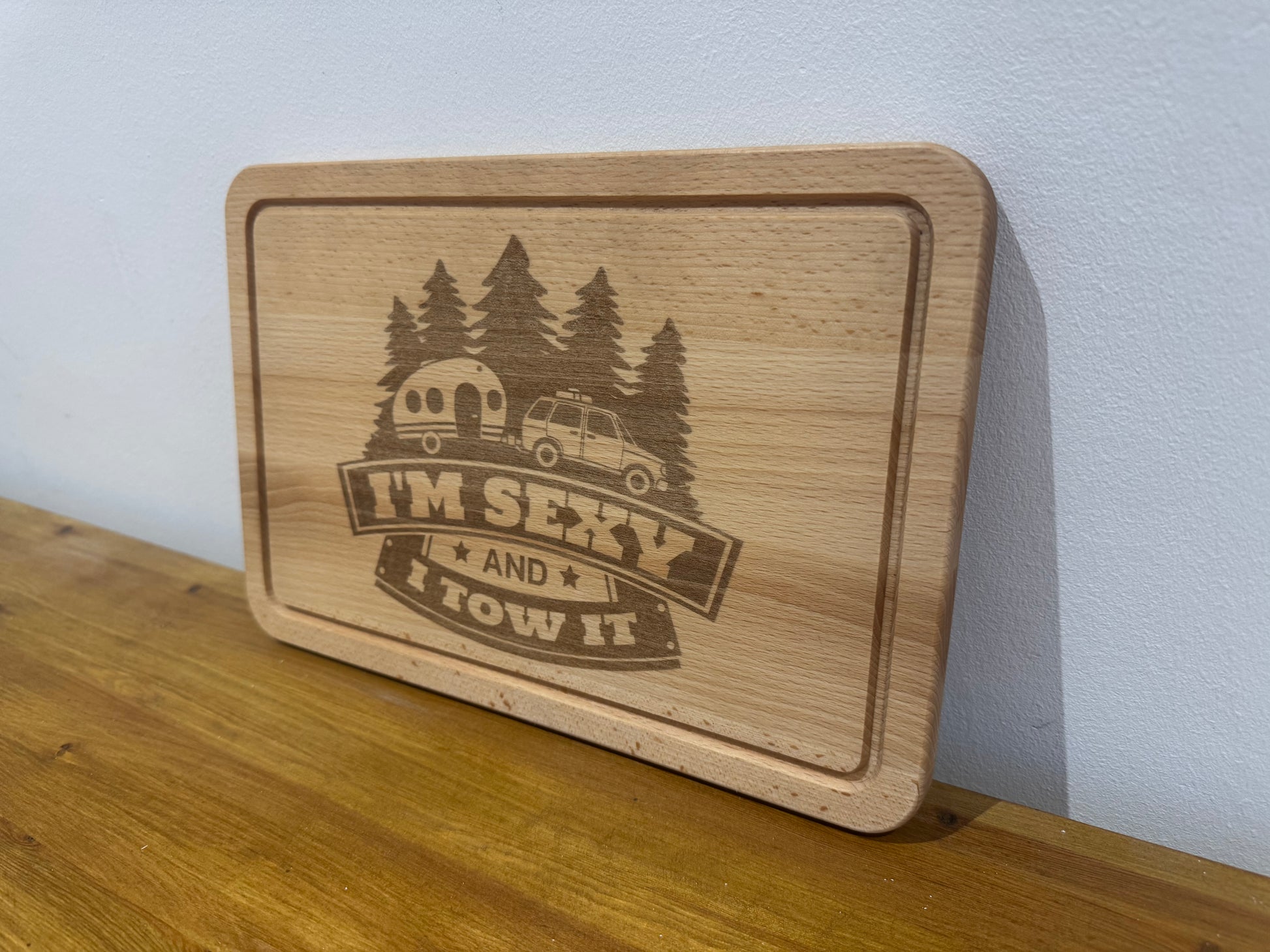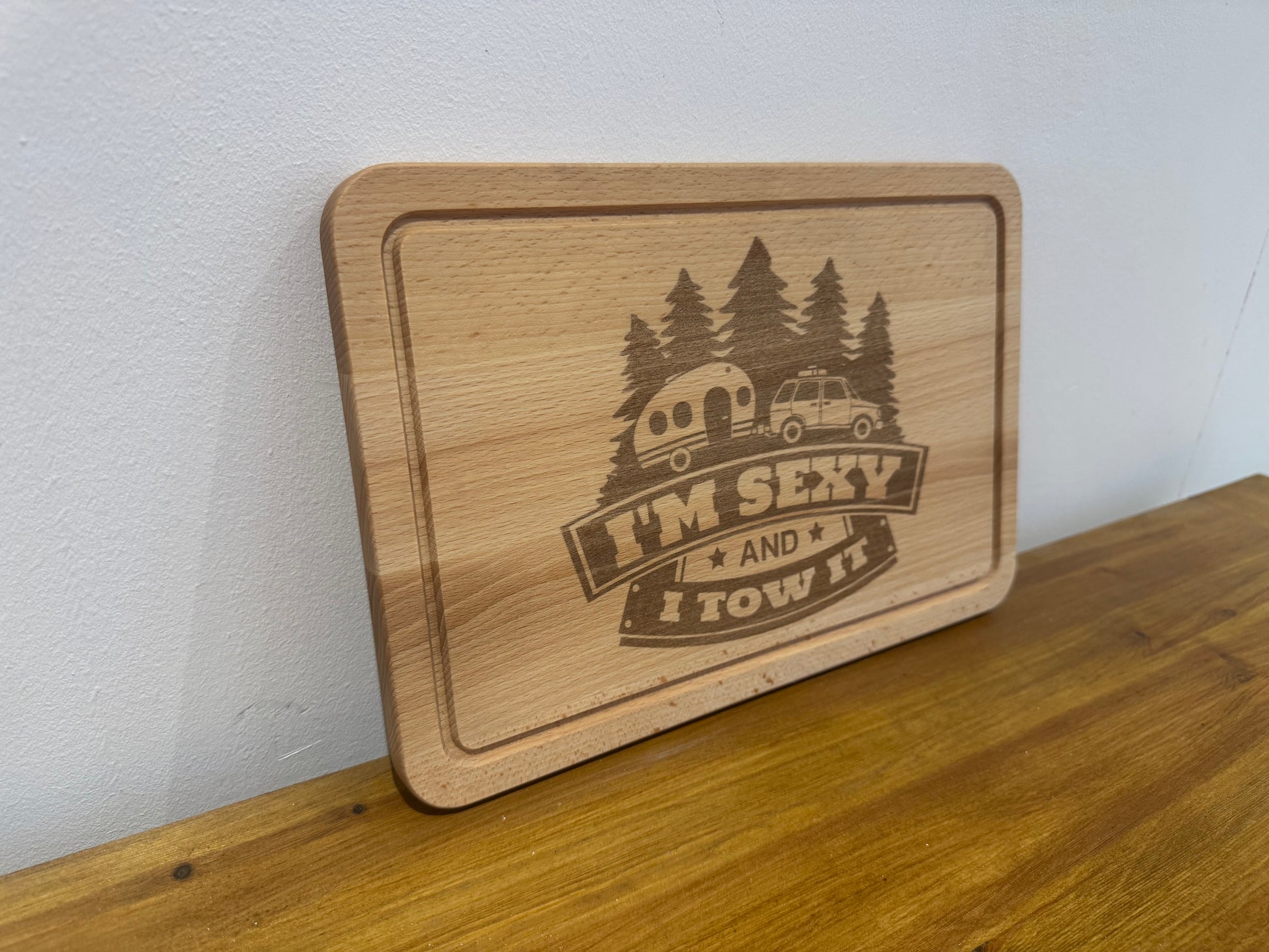 I'm sexy and I tow it chopping board, Cutting board. Caravan chopping board. Gift, birthday, anniversary, wedding, fathers day, mothers day